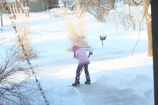 Ellen shoveling the steps yesterday morning.